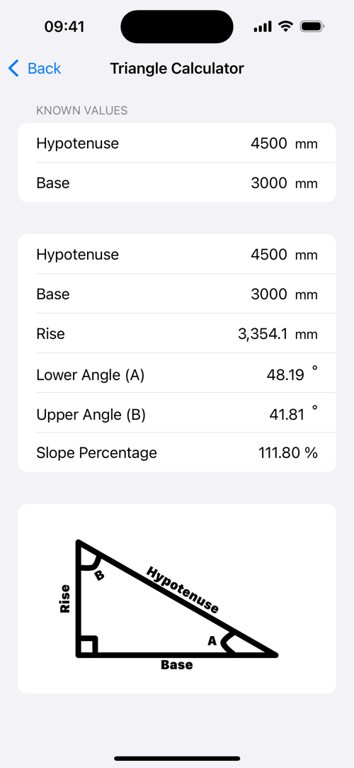 С Chippy Tools расчет углов и длин сторон предельно прост. Вводя любые два значения, приложение рассчитывает недостающую сторону или угол. Например, если вы знаете один угол и одну сторону, приложение использует тригонометрические функции, такие как синус, косинус и тангенс, для определения других сторон и углов. Даже если вы знаете только два угла, приложение определяет оставшиеся длины сторон, обеспечивая наличие всех необходимых измерений.
